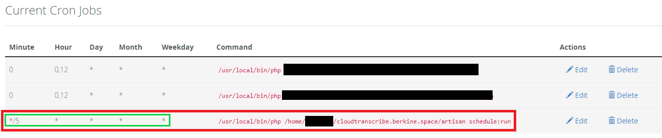 /usr/local/bin/php /home/username/YOURDOMAINPATH/artisan schedule:runImportant: Please note that above path of PHP bin directory and path for the directory can be different in your case. You might want to check with your provider to figure out where PHP bin folder is located in your hosting provider.