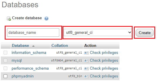 - Step 3: Provide database name and select utf8_general_ci as collation and click create button.