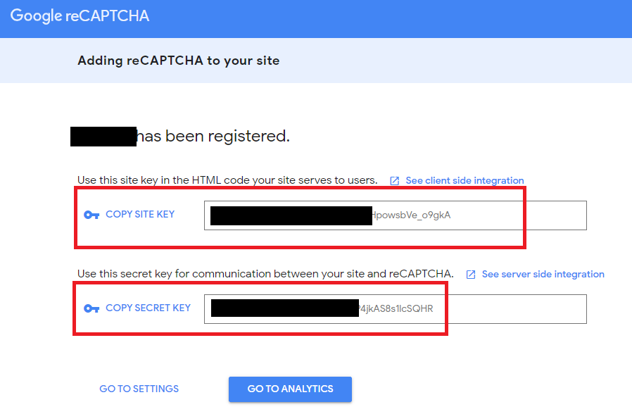 - Step 7: Copy both "Site Key" and "Secret Key".