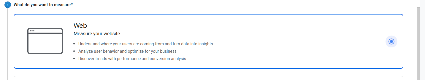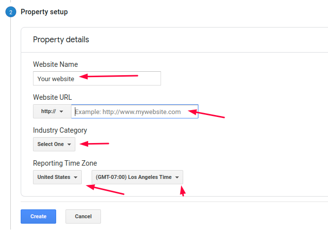 - Step 3: Click Create Property, **select Web and then Continue.**.