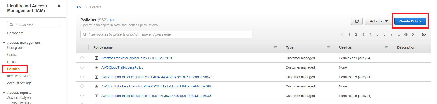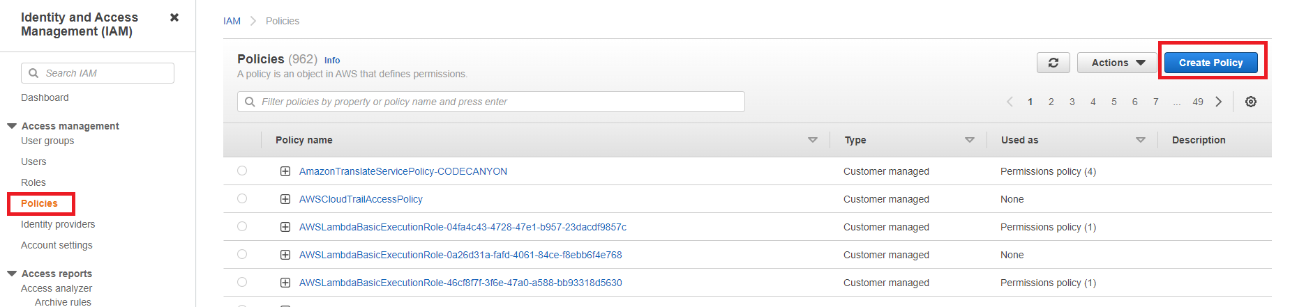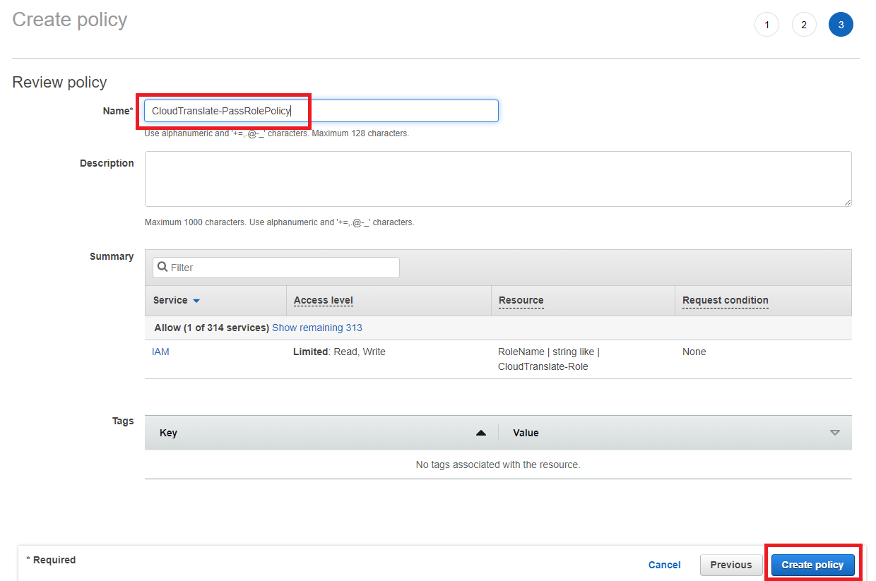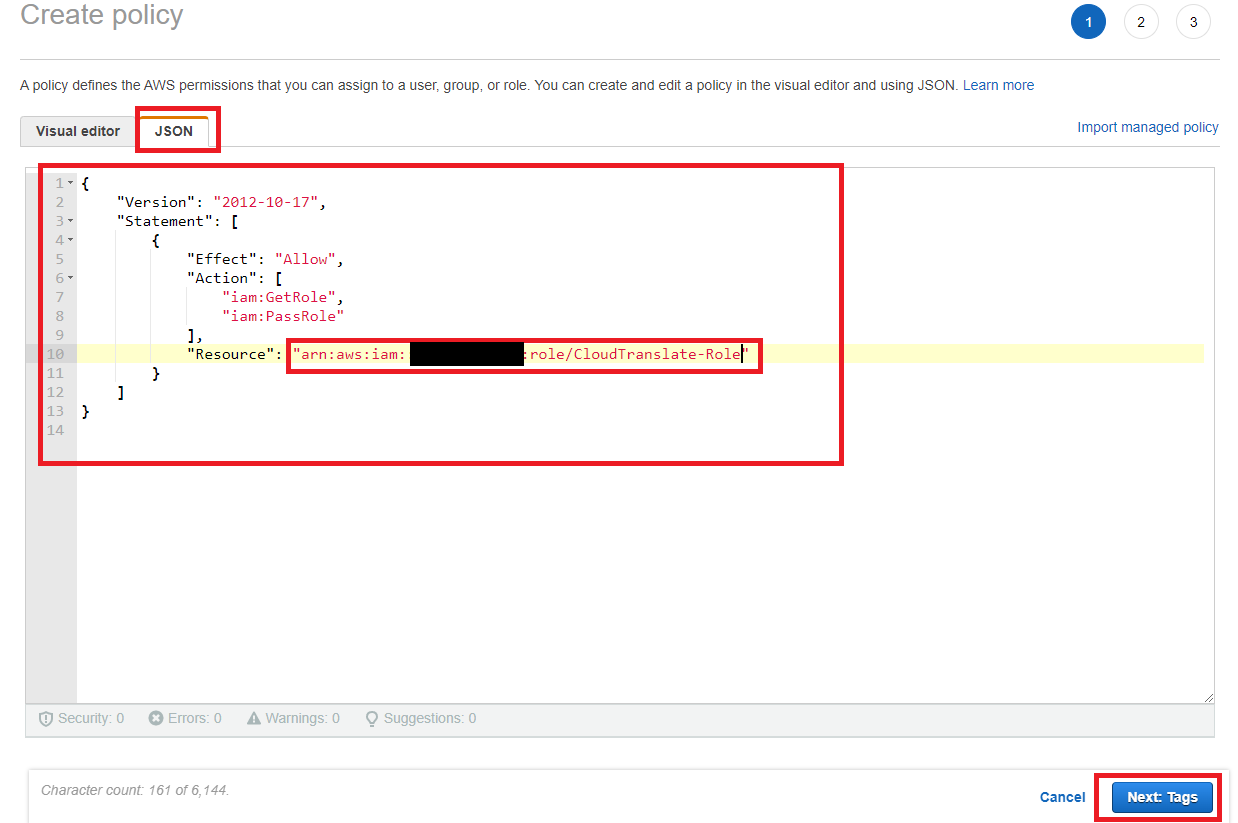 - Step 7: Seach for AmazonS3FullAccess and TranslateFullAccess, select both afterwards select click Next: Review