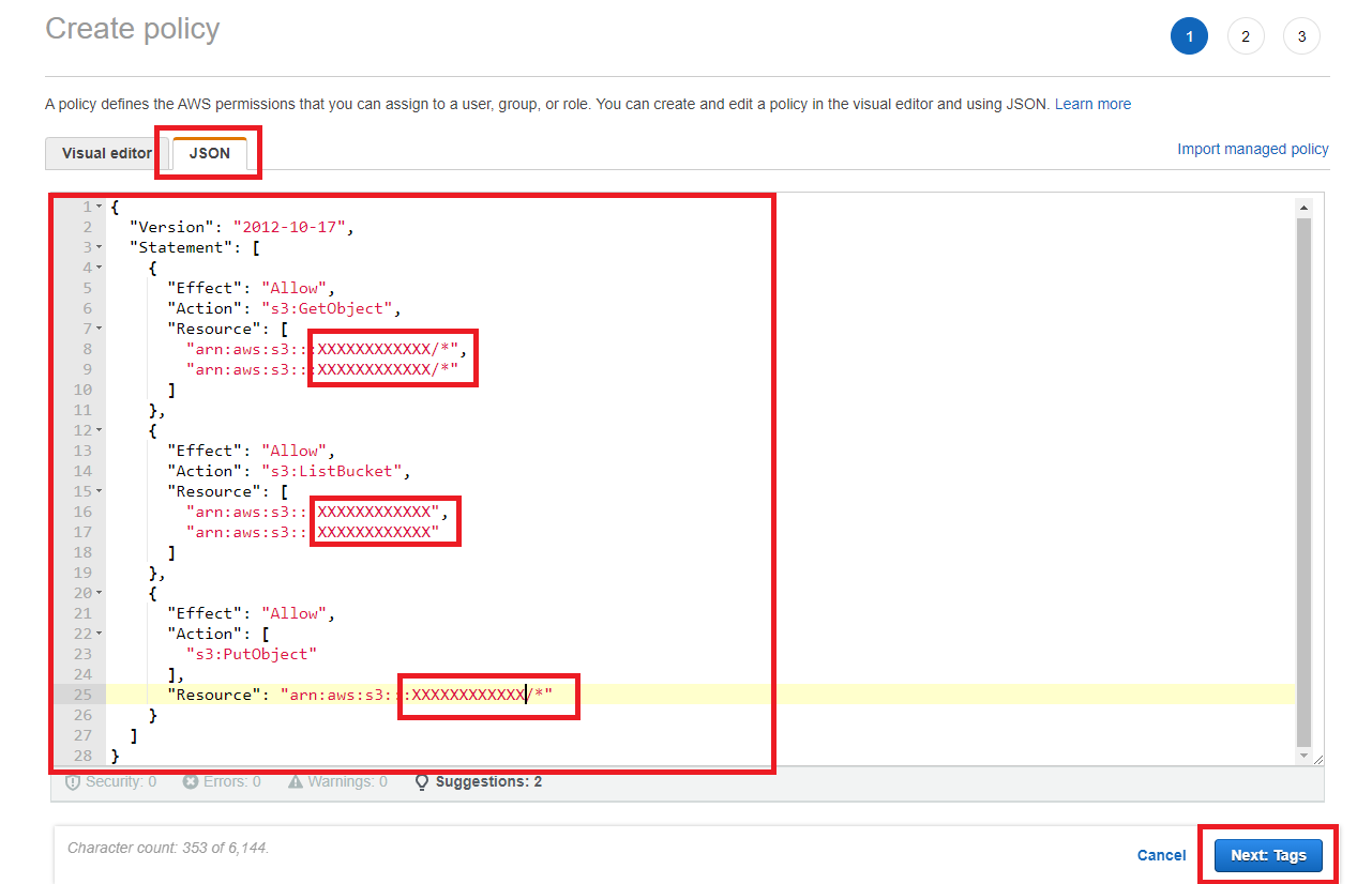 Note: If you are familar with IAM Policies, you can create custom policy that will match your needs and security requirements. - Step 8: To view the users' access keys (access key IDs and secret access keys), choose
