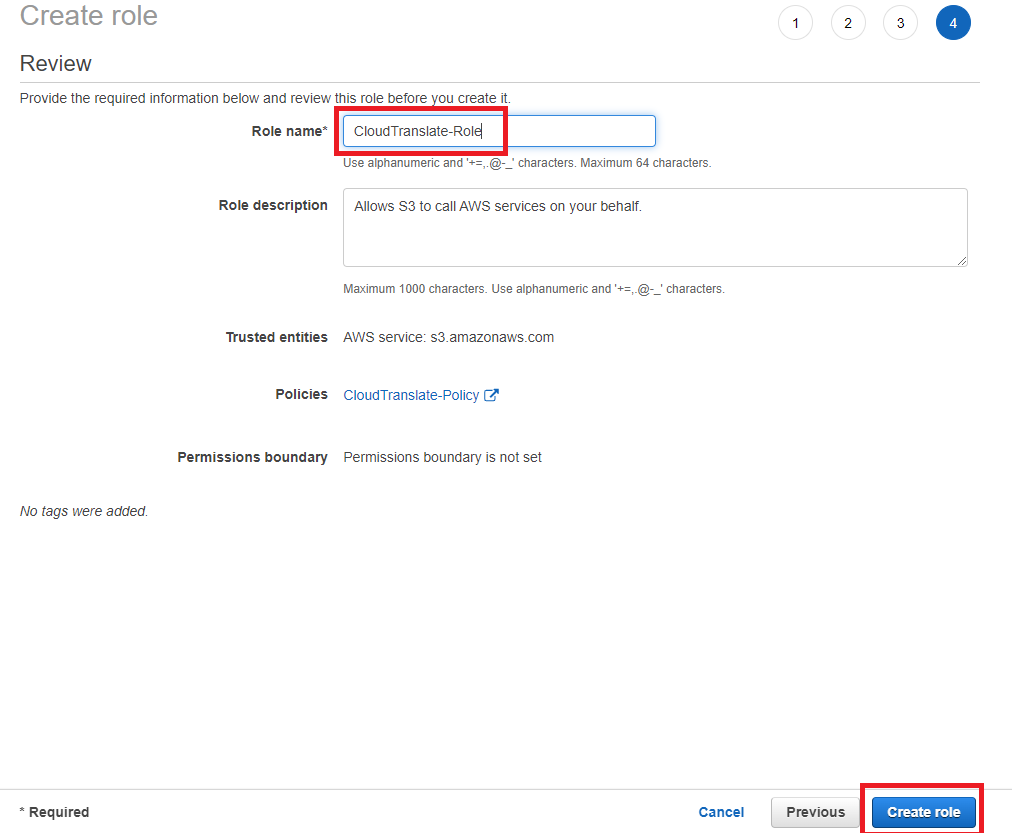 Important: File translation is supported in the following AWS Regions, so make sure you create you bucket in one of them: