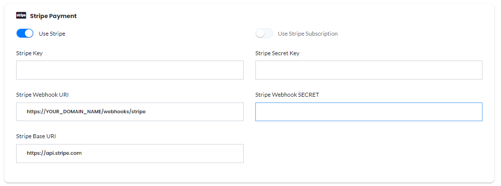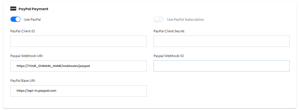 - Step 4: Fill up the all required fields and inlcude Paypal/Stripe - Subscription/Plan IDs.