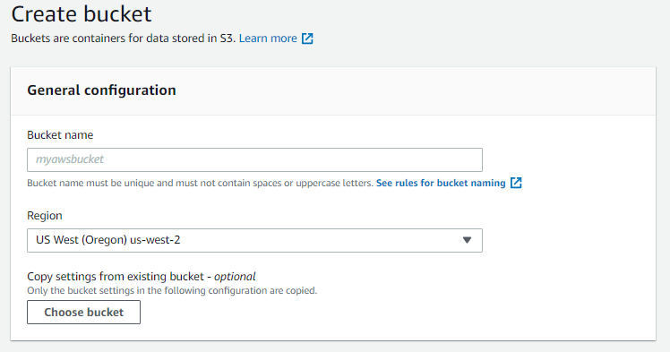 - Step 3: Enter Bucket Name and Select AWS Region where you would like to store your files and click Next. Note: Bucket name must be unique at a global level.
